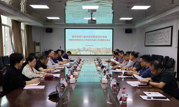 根据省委教育工委工作部署,惠州学院与我校将开展为期3年的党建与思想政治工作结对共建。为进一步推动此次结对共建工作提质增效,以高质量党建促进教育事业高质量发展,10月21日下午,惠州学院党委组织部部长邬强率队与我校党委书记兼督导专员张华一行,在学校411会议室召开第三轮党建和思想政治工作结对共建工作调研交流会。会议由我校党委组织部兼宣传部部长吕玉林主持。