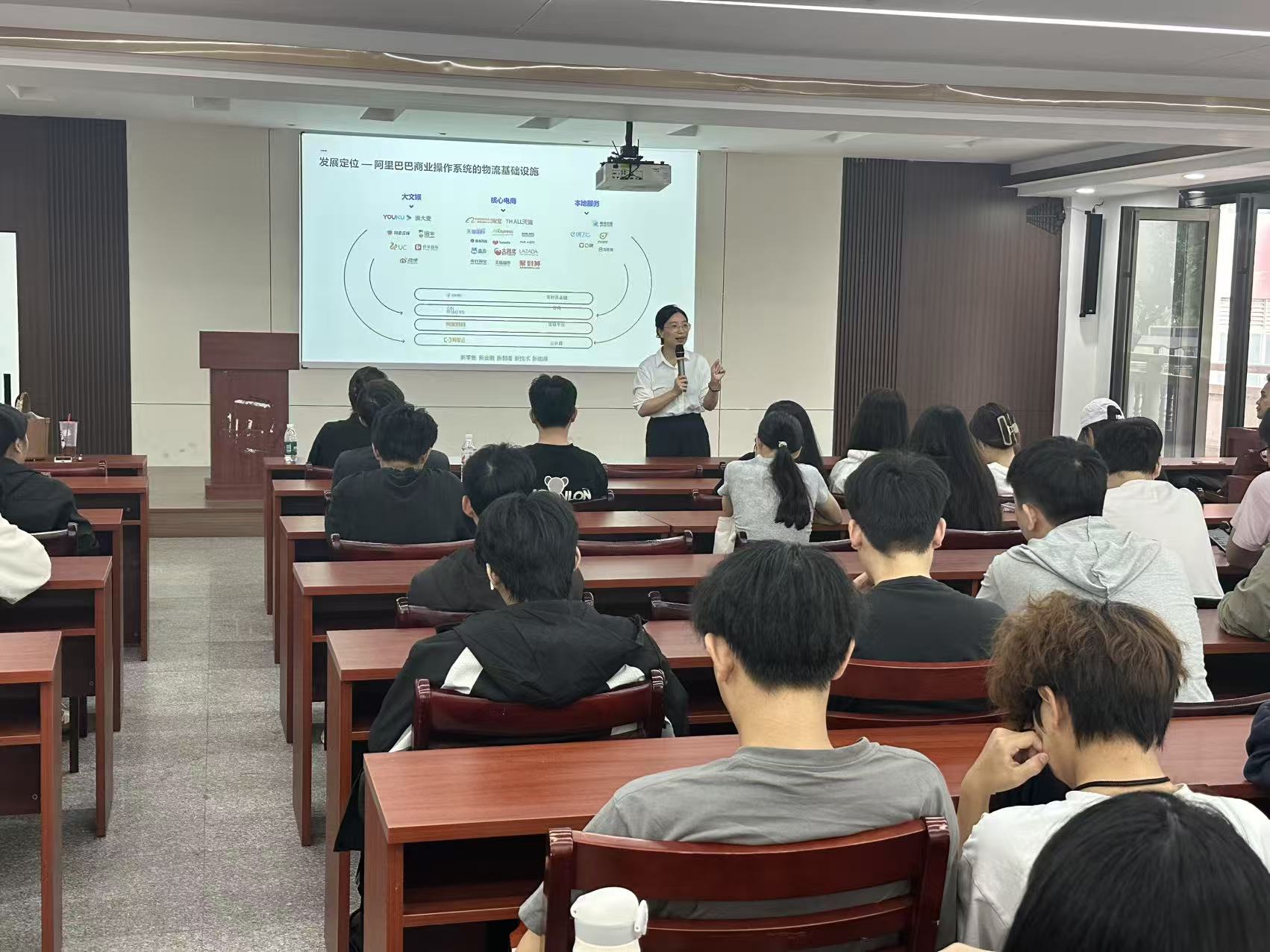 随后,菜鸟供应链代表围绕 “数智引领物流未来” 主题展开分享。作为阿里巴巴商业操作系统的物流基础设施,菜鸟供应链凭借覆盖全国的仓配网络、海量商家大数据及前沿算法技术,展现了物流行业数字化转型的发展趋势。宣讲中,企业重点推介了鸿鹄物流班、校园讲座、仿真实训室等校企合作项目,旨在通过提前储备基层管理人才,助力学生成长为仓储供应链领域专业人才。