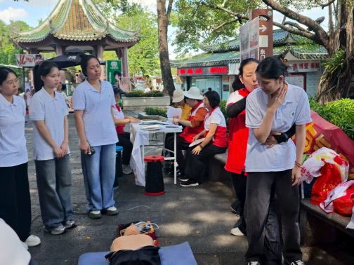 为积极响应“世界急救日”的号召,我院志愿者队携手惠州市红十字会于9月13日在惠州西湖红十字救护站开展了一场别开生面的应急救护知识与技能普及活动。此次活动不仅是一次技能的传授,更是一次生命的守护之旅,为我校急救教育试点项目的开展奠定了坚实基础。