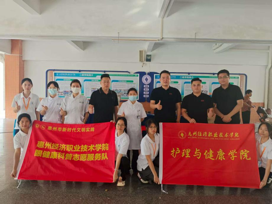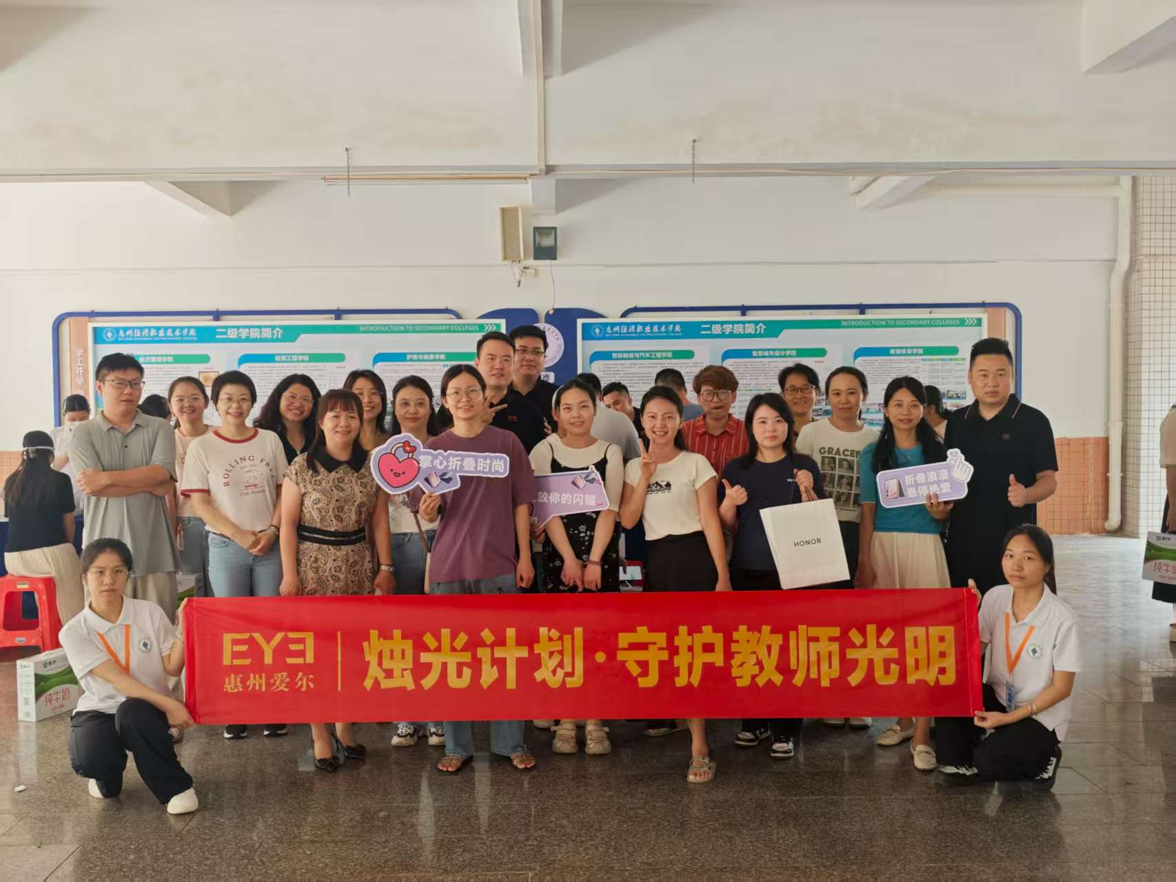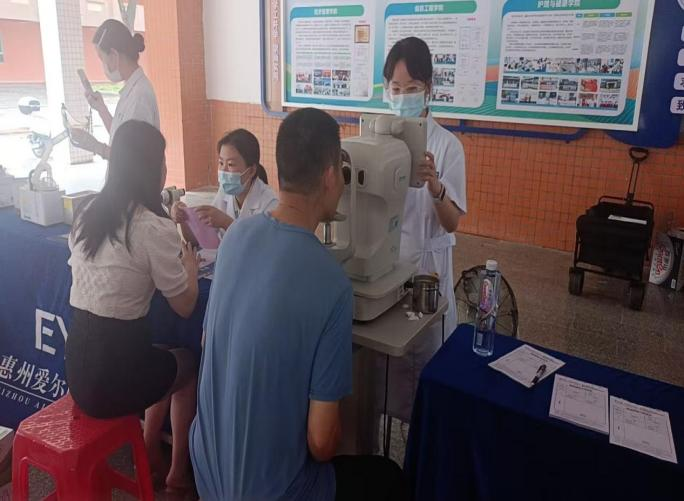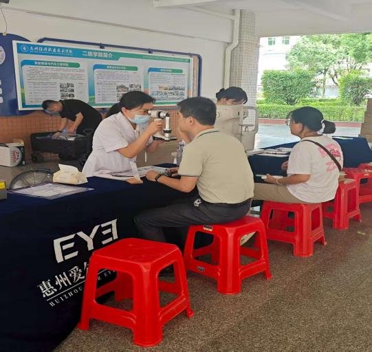 在第41个教师节来临之际,为深入践行“我为群众办实事”的初心使命,9月9日下午,护理与健康学院联合惠州爱尔眼科医院、学校工会在第一教学楼一楼开展“爱尔眼睛”公益活动,针对教师群体长期伏案、用眼强度大的特点,特定制“教师眼健康套餐”服务。