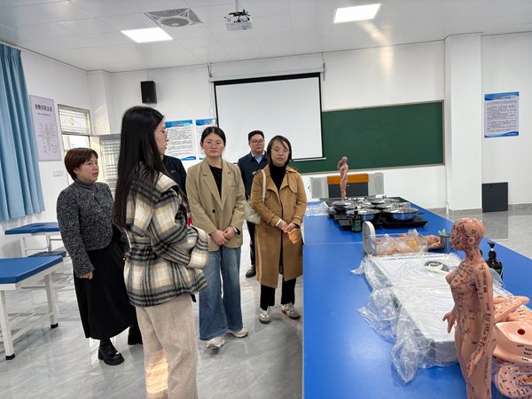 交流会议结束后,在尹小娟副院长和魏龙俊副院长等的陪同下,罗小燕委员一行实地参观了护理与健康学院实训基地,重点走访康复治疗技术、中医康复技术专业实训室。现场,参观了学院实训室功能布局与设备配置,体现出实训室紧扣实践能力培养。罗小燕一行参观后,高度认可 “以实训促技能、以技能接临床” 模式,认为能助学生提前适应临床,缩短岗位适应期,为实习合作与人才输送奠定基础。