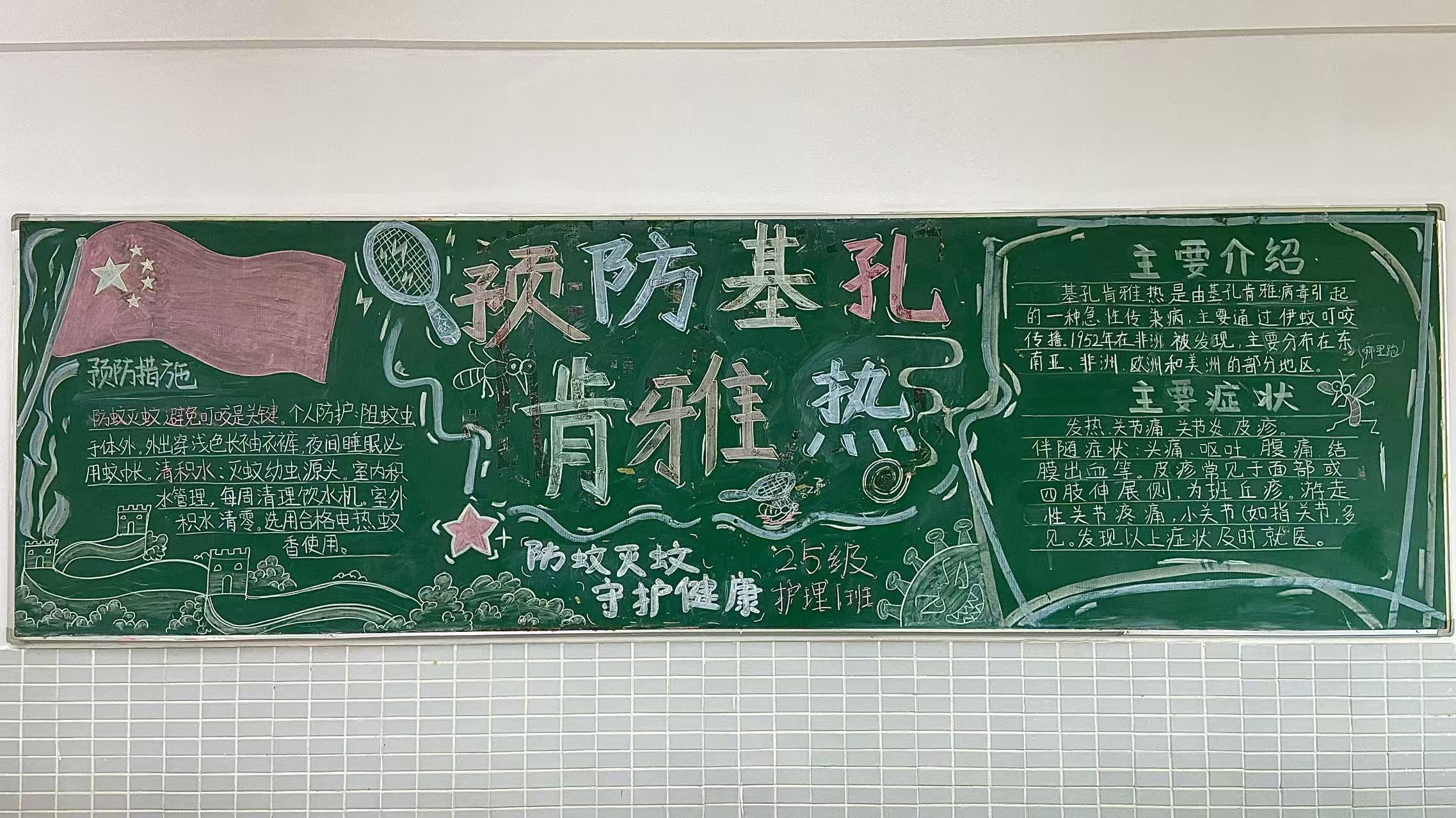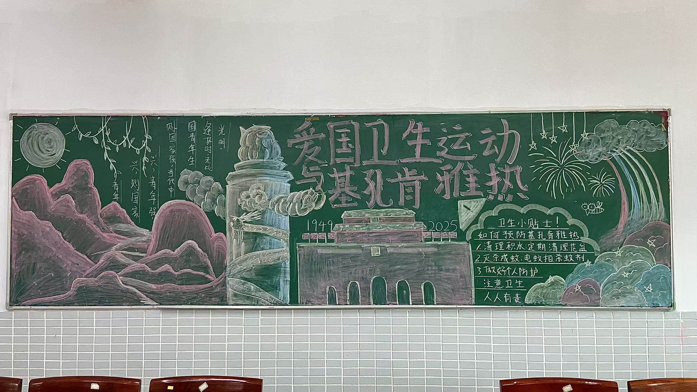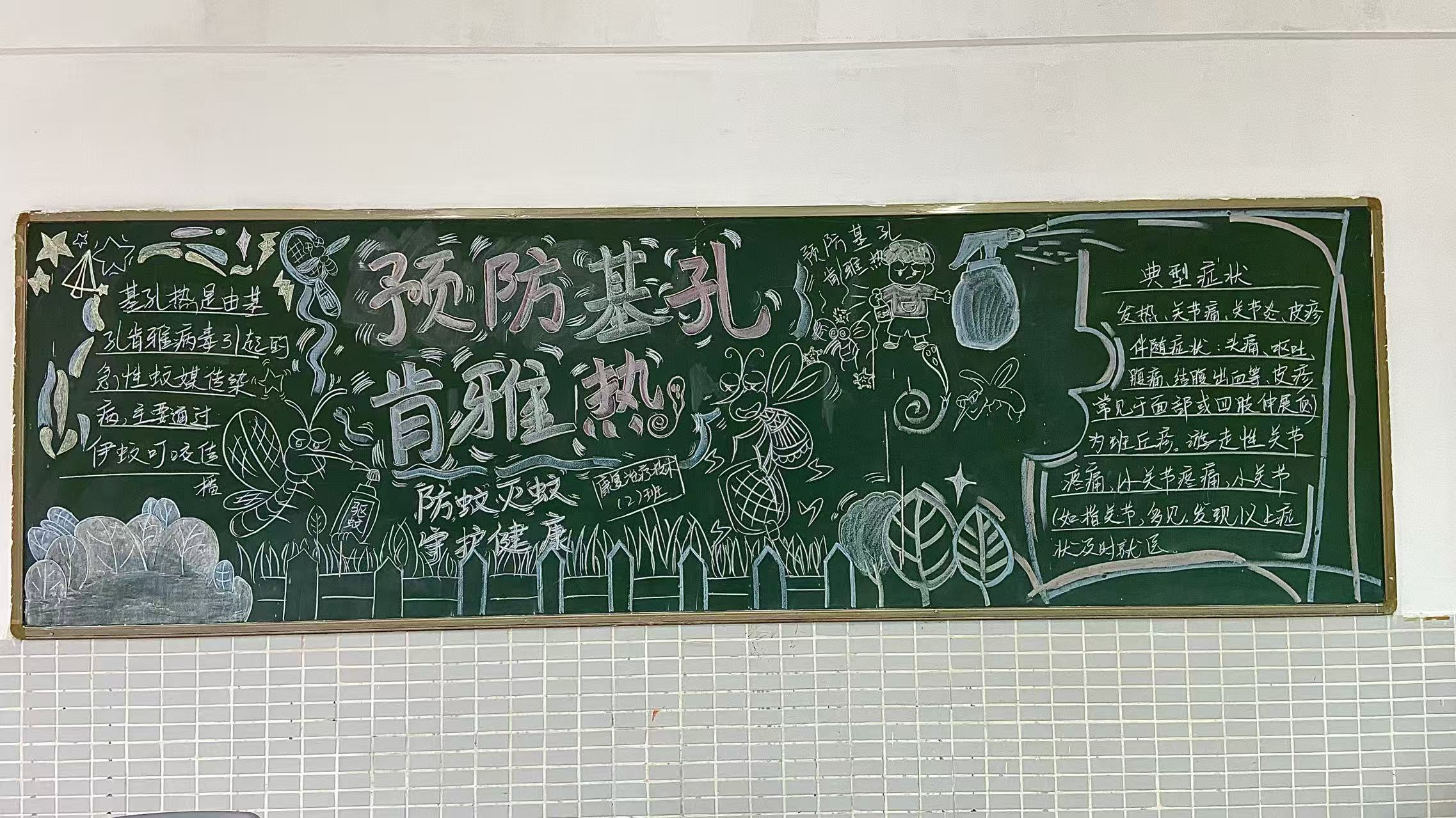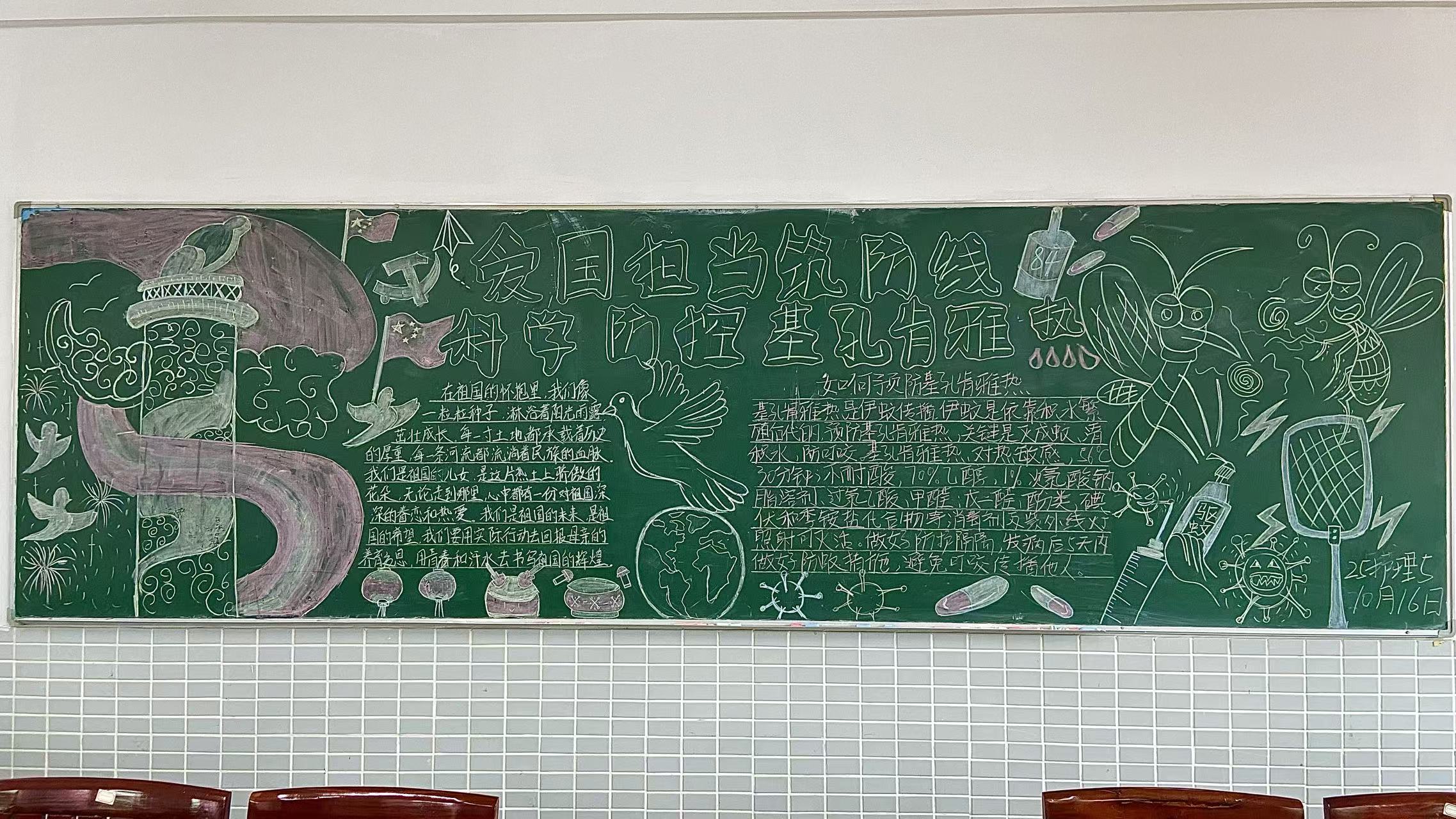 比赛期间,各班级黑板报犹如一幅幅生动的画卷,展现着同学们对爱国卫生运动的深刻理解。有的以图文并茂的形式,详细介绍了基孔肯雅热的传播途径与防范措施,提醒大家清理积水容器、做好防蚊工作,每一处细节都彰显着对健康的重视;有的则通过生动的案例,讲述日常卫生习惯与生命质量的紧密联系,呼吁大家从自身做起,养成良好的卫生习惯。