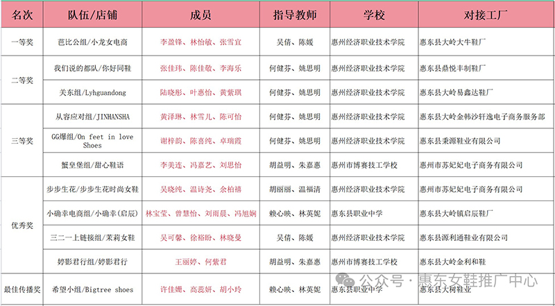 本次直播大赛活动邀请了17家惠东制鞋工厂以及惠州多所中高职院校的100余名学生,共同组成了32个电商直播团队。自6月30日启动至8月1日结束期间,赛前曝光量达到204981人次,共有149084人次参与活动投票,通过小红书平台发布关于“惠东女鞋”产品的笔记共计691篇,吸引148140次浏览,开展直播活动207场次,吸引超过8012人观看,成功达成67宗鞋品交易,有效助力鞋企拓展线上销售渠道,提升了“惠东女鞋”区域品牌的知名度。