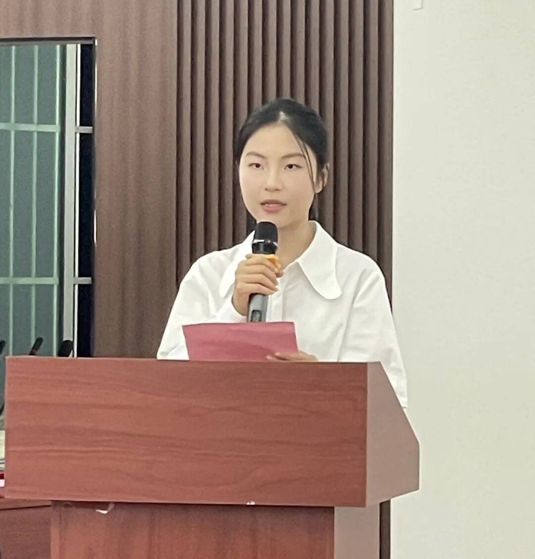 紧接着,第十届团委学生会主席团代表王熙童上台发言。她首先对学院的培养与师生的信任表示感谢,并代表新一届主席团庄严承诺,将继承和发扬学院的优良传统,精诚团结,与时俱进,开拓创新,带领新一届团学组织更好地服务同学、助力学院发展,用实际行动兑现今天的誓言,开创学院团学工作的新局面。