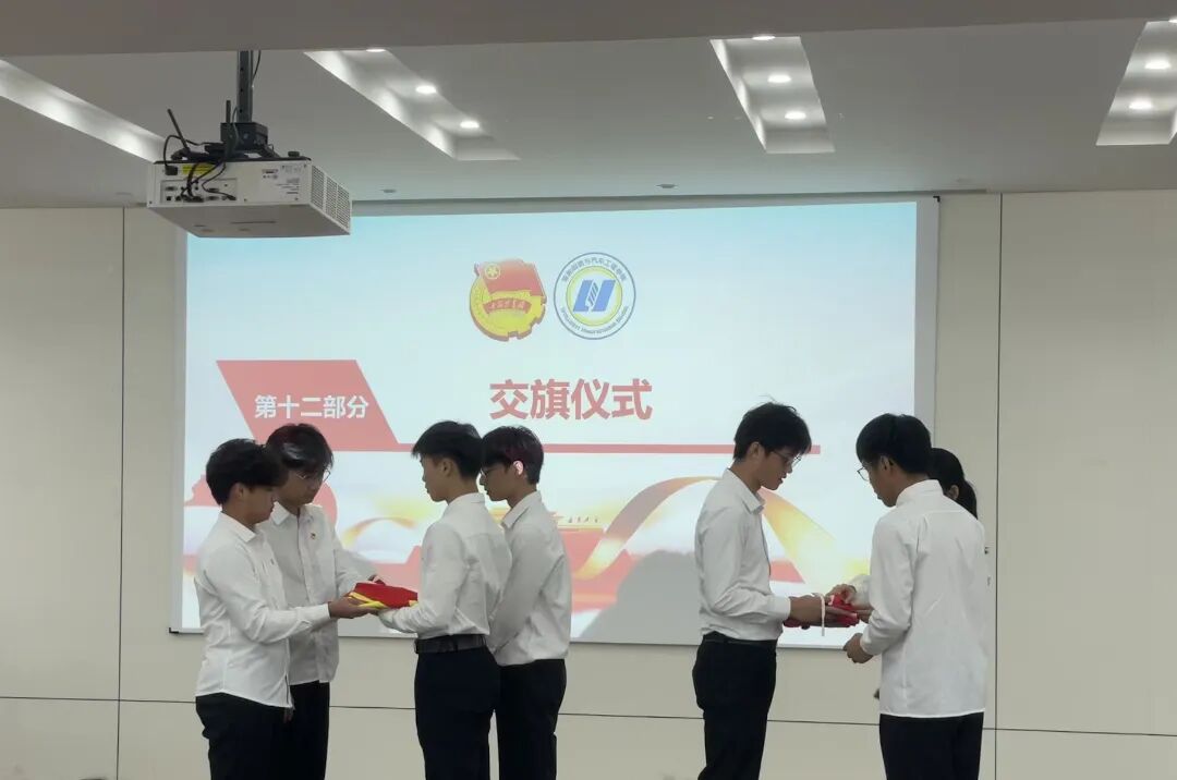 本次大会最激动人心的环节莫过于交旗仪式。第九届主席团将象征着责任与使命的团委学生会会旗郑重地交到第十届主席团手中。这一刻,旗帜飘扬,传承的不只是一面旗,更是智能制造与汽车工程学院团学组织“全心全意为同学服务”的初心与精神。