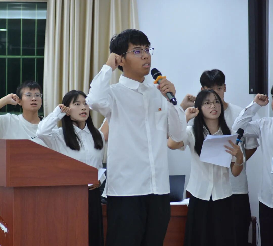 在第十届团委学生会主席团代表张思仪的带领下,新一届全体团学成员高举右拳,进行了庄严的就职宣誓。铿锵有力的誓言回荡在会场,表达了他们恪守职责、勇于担当、服务同学的坚定决心。