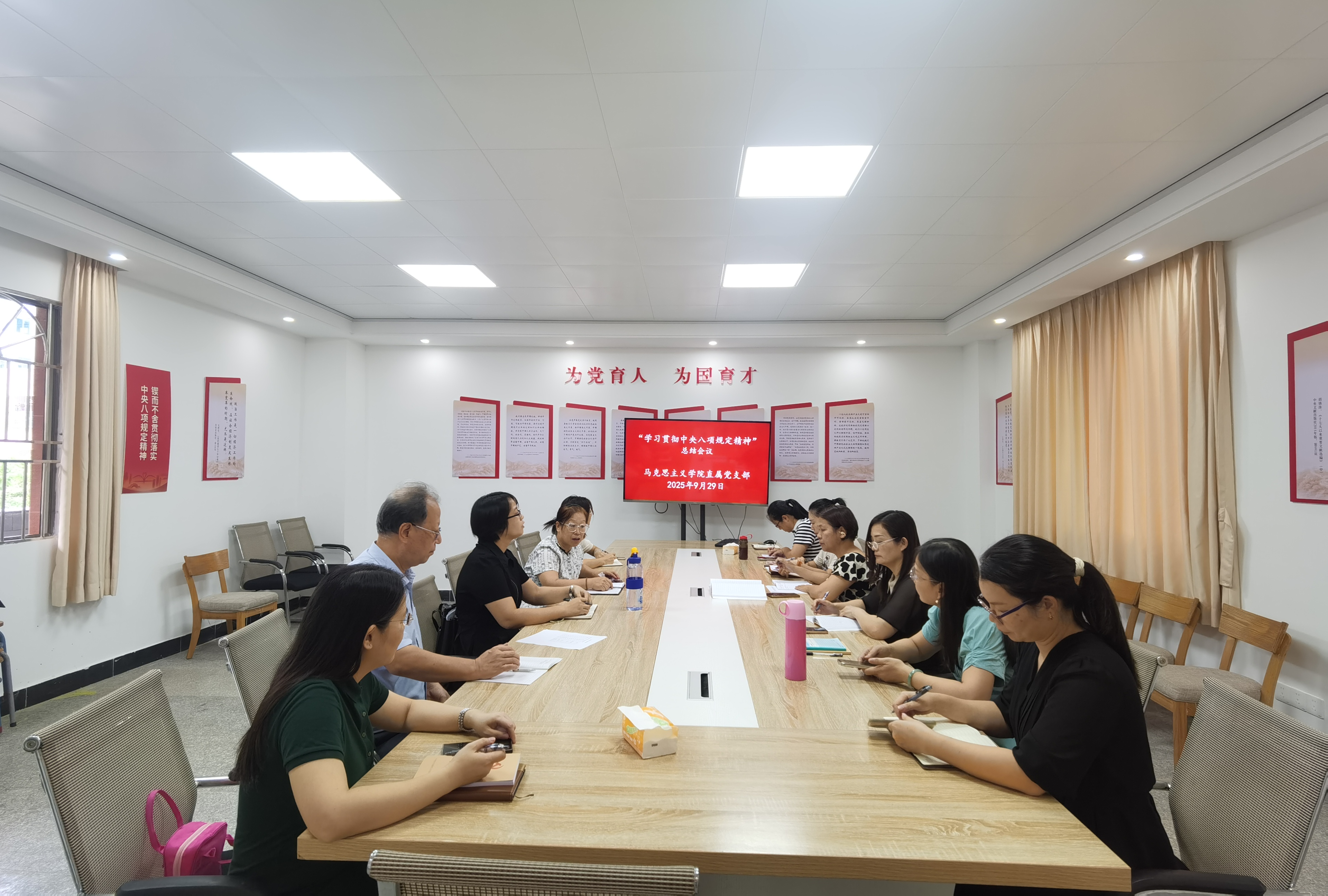 9月29日中午,马克思主义学院党支部召开党员大会,全面总结学院“贯彻中央八项规定精神学习教育”开展情况,对进一步巩固拓展主题教育成果进行部署。学院领导班子成员、全体党员参加会议,会议由支部副书记黄翠萍主持。