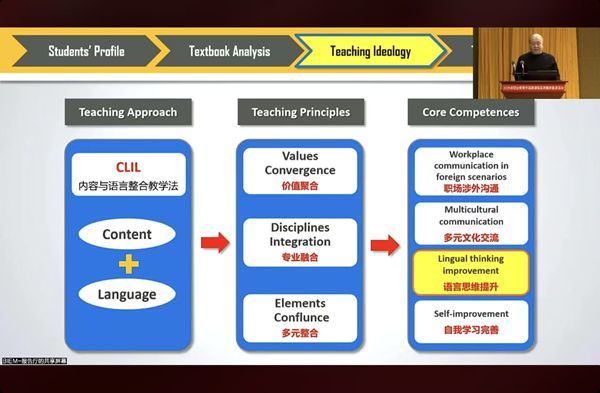 本次培训紧扣课程思政的核心内涵与实践要求,由国家级/省级课程思政示范课程、教学名师和团队以及全国职业院校技能大赛教学能力比赛等获奖团队进行建设经验分享和课程示范展示活动。内容从培养家国情怀、提升国际胜任力、讲述中国故事等方面,通过多门课程详实的课堂实例与课堂教学步骤演示,展示了如何在外语教学中自然融入思政元素,实现知识传授与价值引领的有机统一。专家还结合不同专业背景的学生特点,分享如何在信息化环境下开展个性化教学与精准育人,从而拓宽学生的职业视野、强化综合素质、提升思维品质。最后由教育部职业院校外语类专业教学指导委员会委员王朝晖教授对所有展示的课程教学给出了肯定及建议,并对于外语教育大类的未来表达了积极态度。